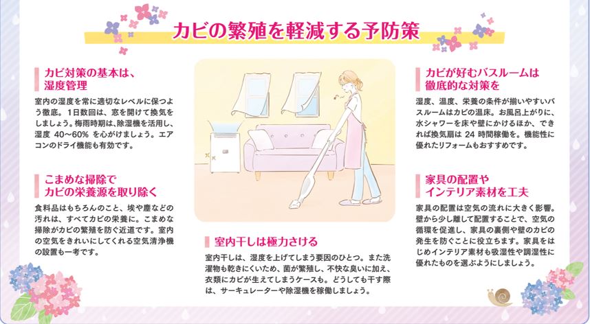 湿気対策でカビの発生を軽減\梅雨時期を快適に過ごそう/
