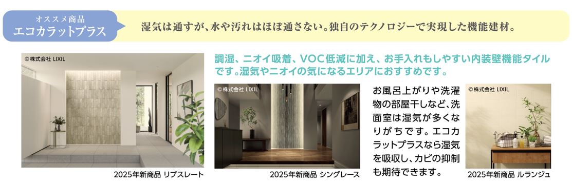 エコカラットは湿気やニオイが気になる 玄関・靴箱・洗面脱衣室・トイレ・クローゼット・リビングなどへの施工がおすすめです