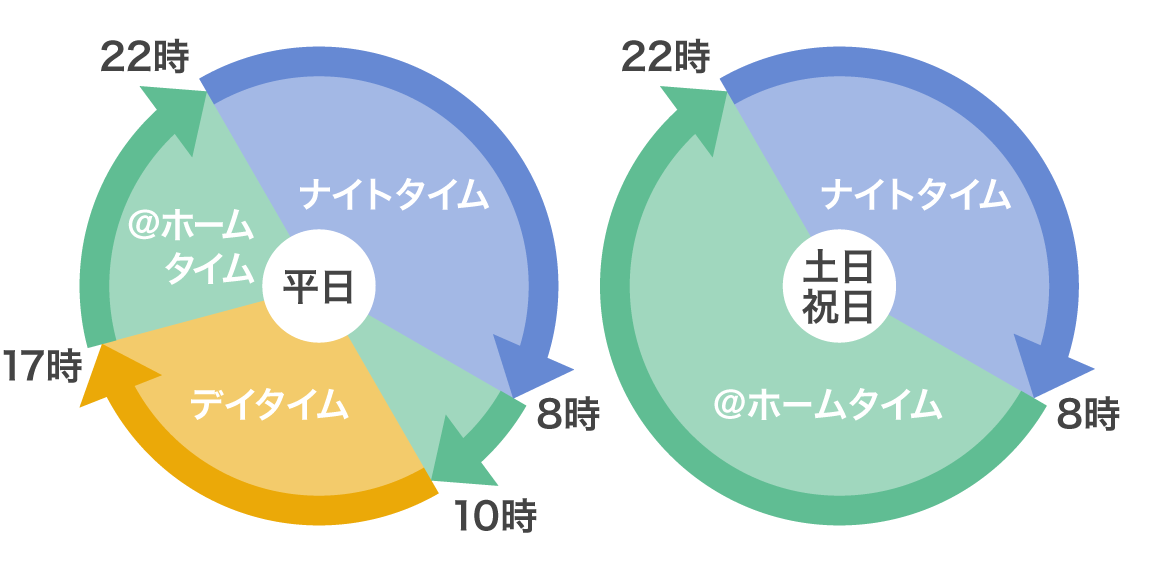 ざっくり言うと平日昼間に家にいない方は前者、いる方は後者という感じですね。